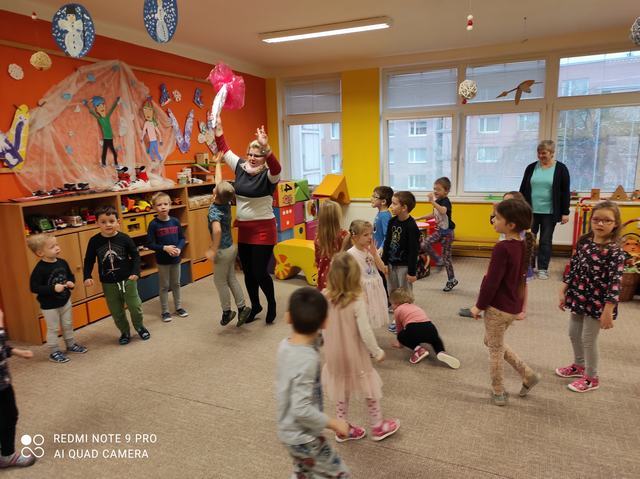 Minulý týden ke Včeličkám zavítala paní Dagmar Čemusová s hudebním pořadem Zvířátka na dvorku. V rámci pořadu si děti připomněly lidové písničky o zvířátkách žijících na dvorečku – Kočka leze dírou, Skákal pes, Pásla ovečky, Když jsem husy...