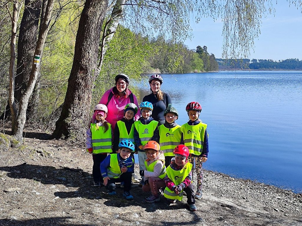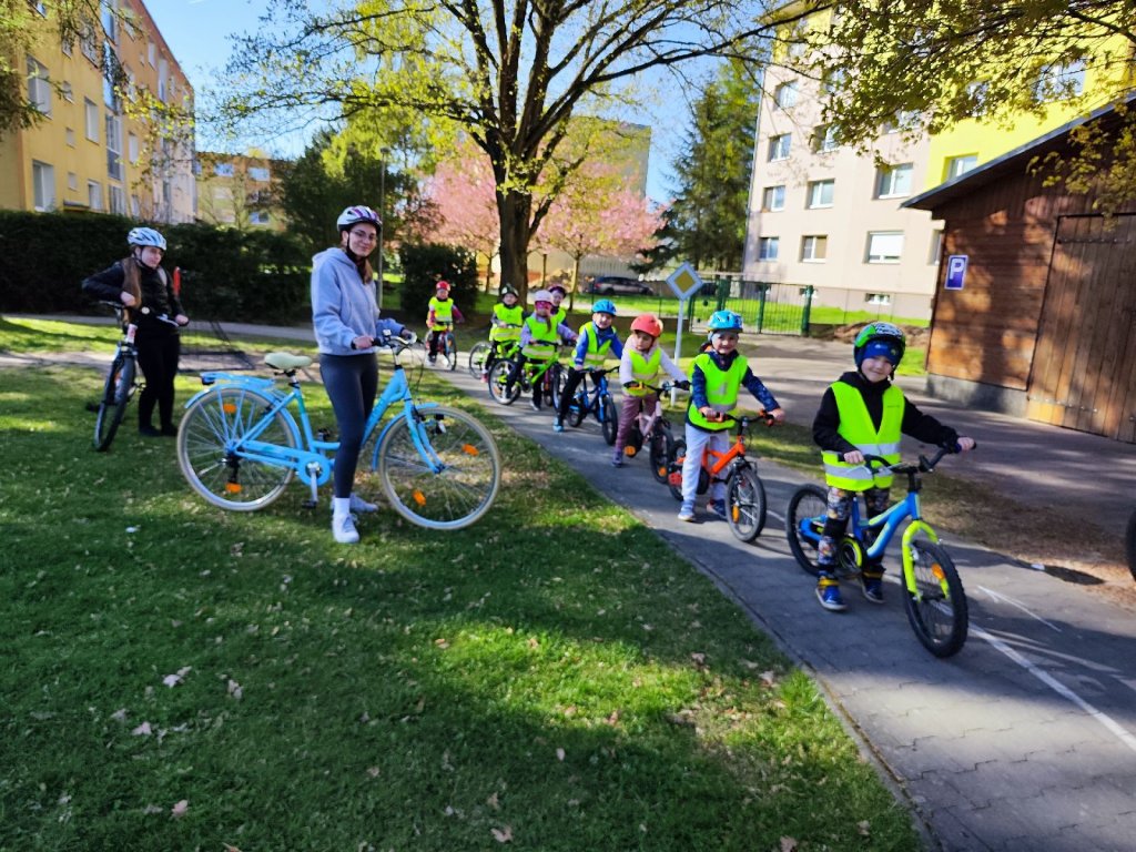 V pátek 24.4.2026 se Zaječí cyklisti vydali na výlet na Břehyni. Po posilnění svačinkou jsme si ještě vyzkoušeli okružní jízdu na zahradě MŠ a poté vyrazili na cestu. Jeli jsme jak přes silnici, tak přes les a na Břehyni jsme byli cobydup. Na zpáteční cestě zpět do školky jsme se zastavili na náměstí a čekala nás sladká odměna v podobě zmrzliny – na ni se všichni těšili samozřejmé nejvíc. Děti byly moc šikovné a těšíme na další výlet na kole.