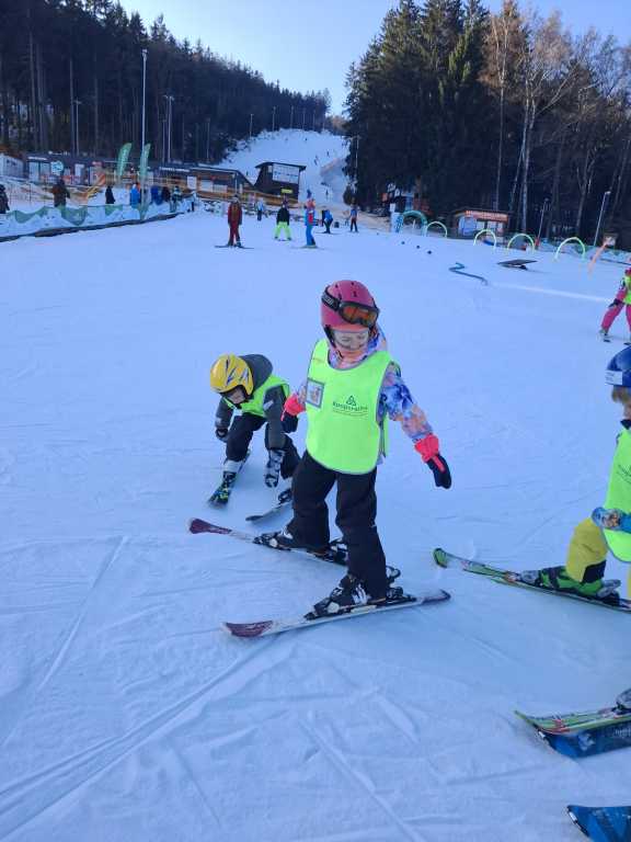 Počasí nám stále přeje a sluníčko nás opět přivítalo na Ještědu. Dnes 12 dětí odjelo na sjezdovku Bucharka, kde se děti učily jezdit na pomě. Některé děti zlepšovaly svou techniku a dopoledne jim rychle uteklo. 9 dětí lyžovalo ve Fun parku, kde trénovaly brždění, zatáčky a učily se tak pilně, že 8 dětí zvládlo jízdu již z celého kopce. Doufáme, že i poslední lyžaříček překoná strach a zítra se mu vše také podaří. Budeme držet palce! Už se těšíme na další krásný den.