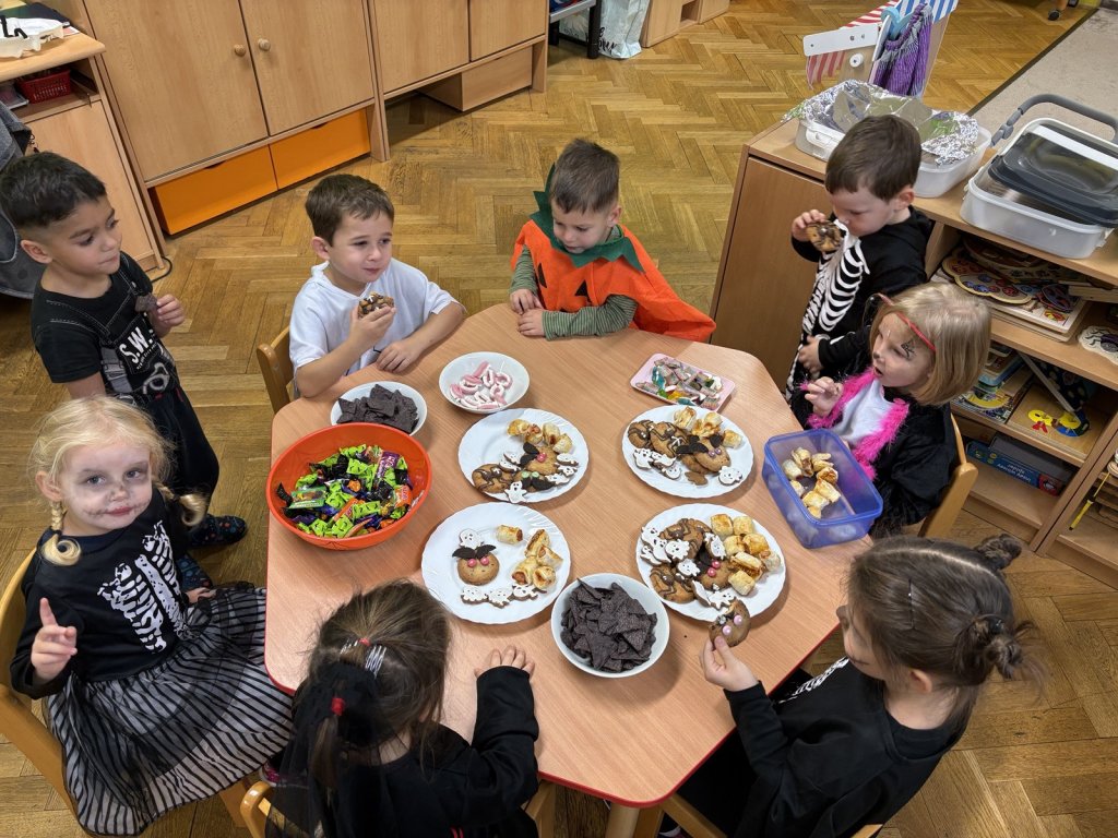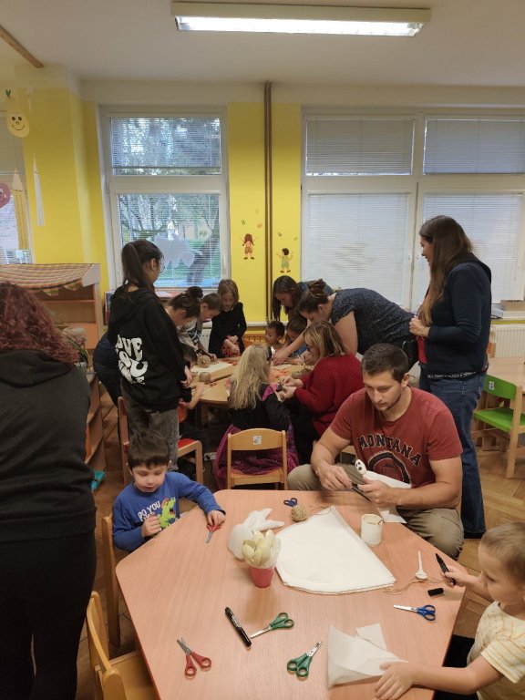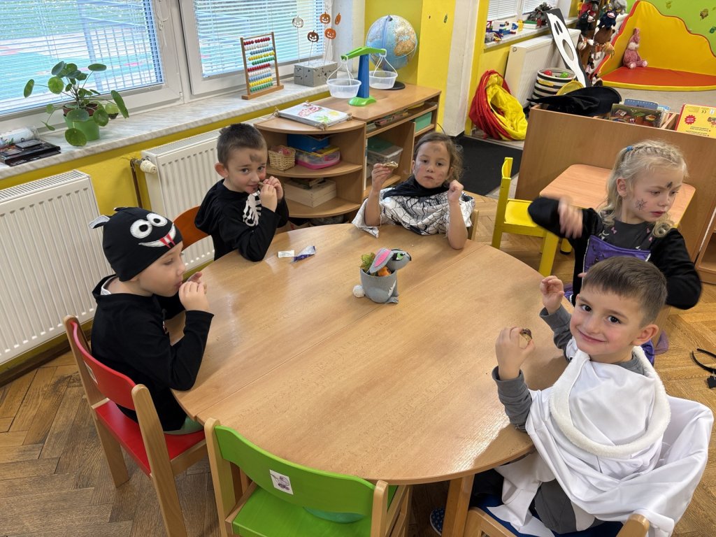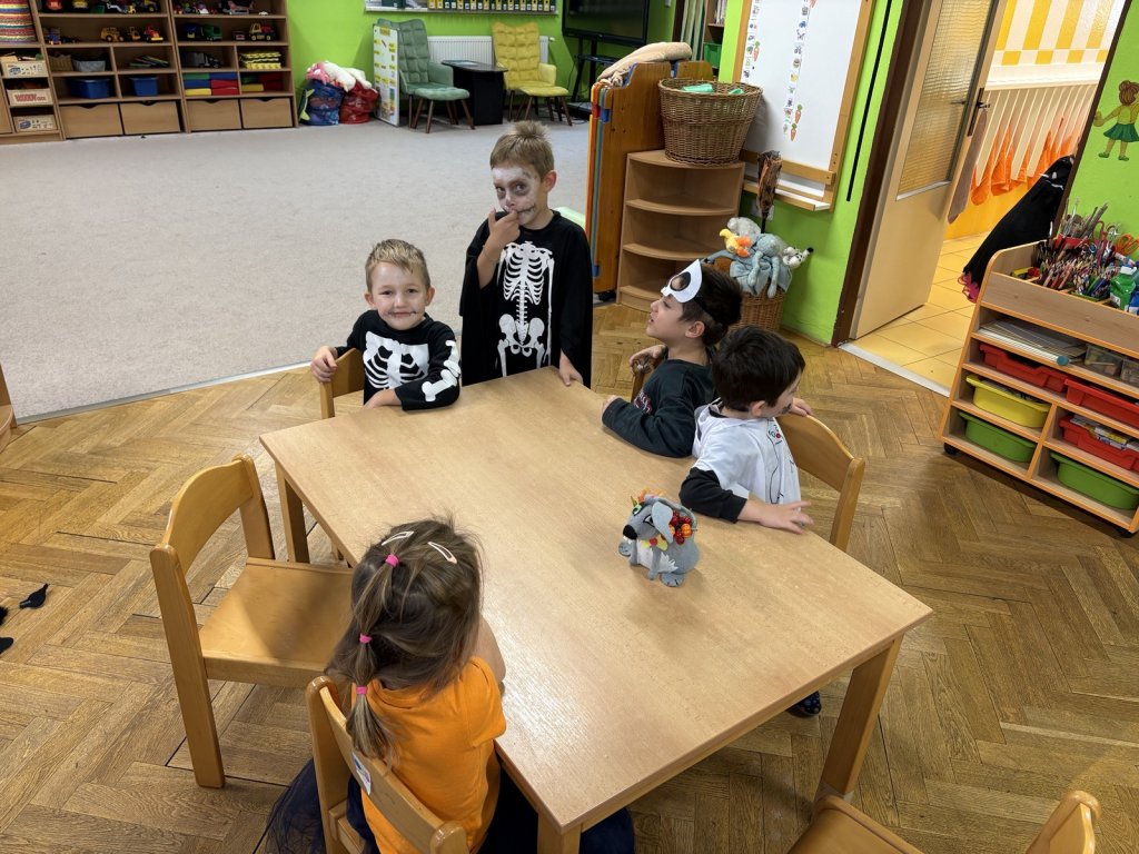 Jako každý rok nás u Zajíčků čekala párty v podobě Duchohrátek. Děti přišly převlečené za různá strašidla jako třeba kostlivec, pavouk, upír či čarodějnice a spoustu dalších. Společně jsme tancovali, zpívali a soutěžili ve družstvech a nechyběly ani Halloweenské dobroty, které si děti užily asi nejvíce. Nakonec jsme si zahráli na modely a modelky a předvedli kostýmy v plné kráse, děti dostaly diplom a sladkou odměnu. Také u nás probíhaly dílničky s rodiči, kde si děti s rodiči vyrobili různé strašidelné dekorace jako dýni, pavučinu, zápich a ducha. Atmosféra byla velmi kreativní a plná radosti. Děkujeme všem rodičům za účast, podporu a těšíme se na další rok.