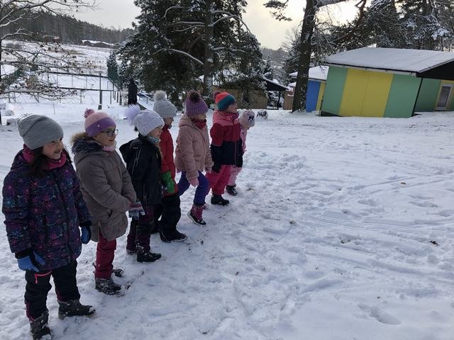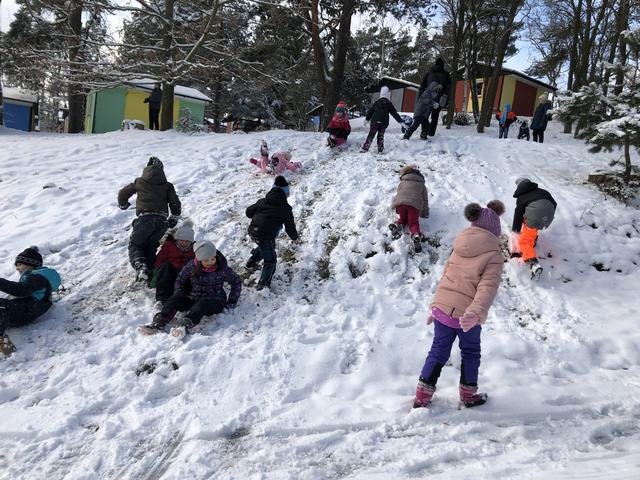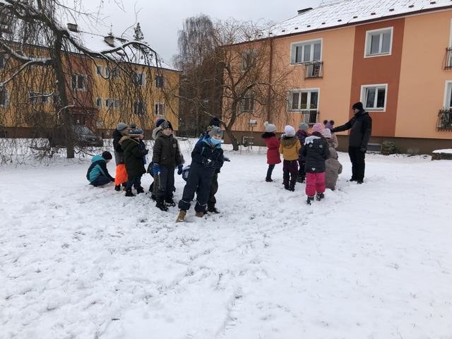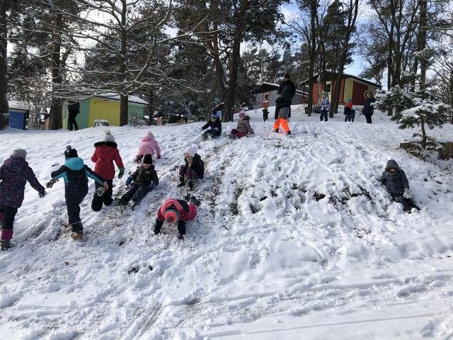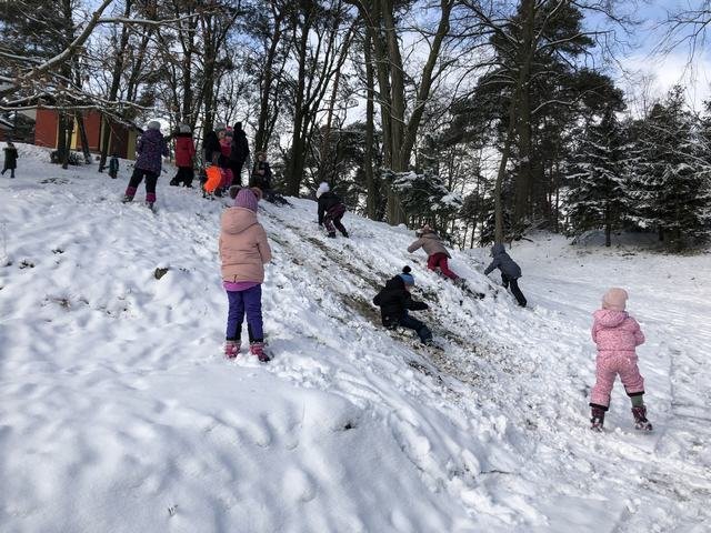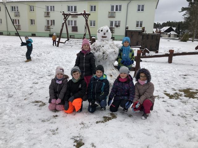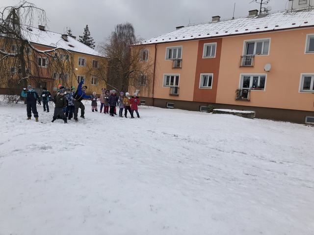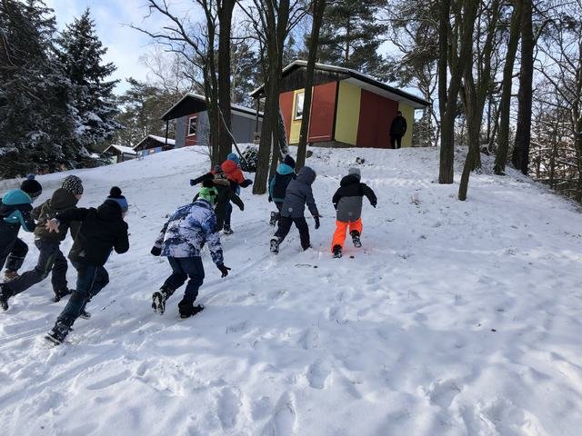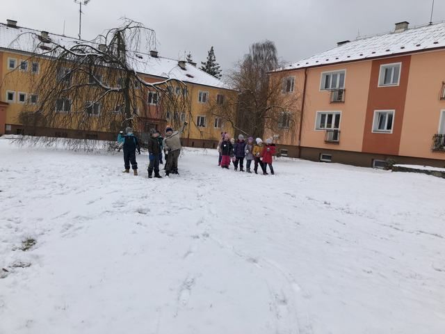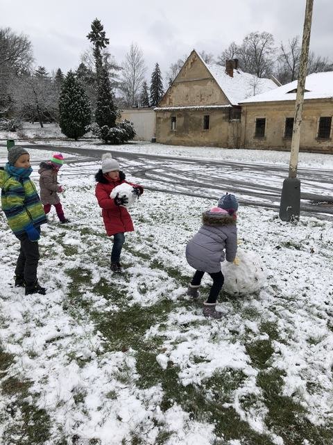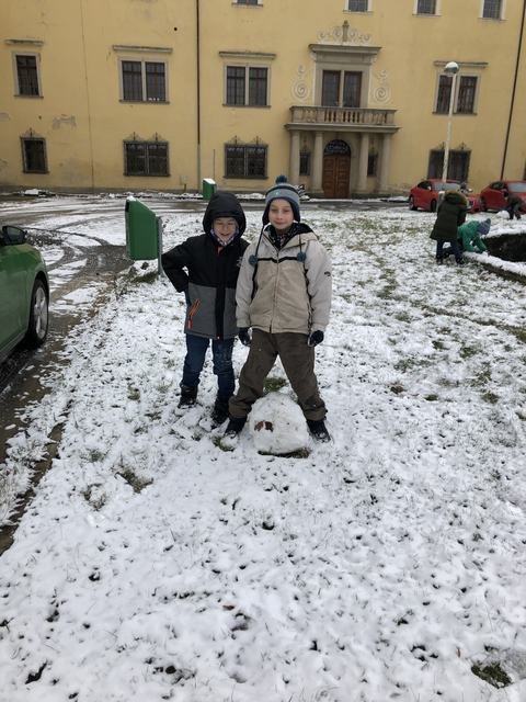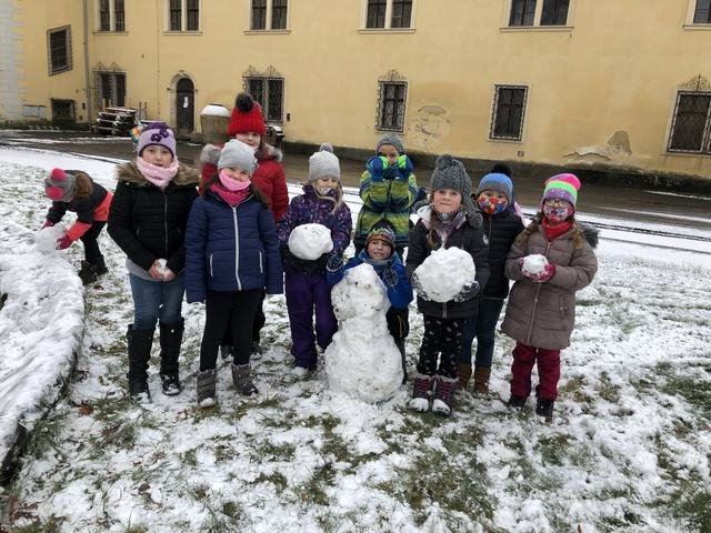Děti z družiny si užívají sníh opravdu naplno. Mají ho spoustu okolo zámku. Jakmile připadne nový, hned si ho vezmou do parády a něco z něho postaví. Každý den chodí s vychovateli na procházky. Cílem procházky je většinou dětské hřiště. V tomto týdnu si děti během vycházek zasoutěžily v různých disciplínách. Zúčastnily se soutěže ,,Kdo bude dobře střílet jako Robin Hood.“ Dále v hodu do dálky a také běžeckého závodu ve zhoršených podmínkách, tedy ve sněhu. Samozřejmě za odměnu bylo hřiště nebo bobování na sněhu. Děti jsou šťastné a spokojené, že je venku sníh a věří, že nám ještě chvíli vydrží!