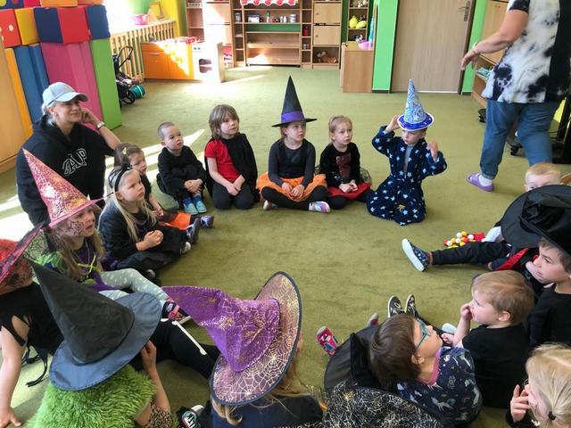 Halloween u Motýlků Kdo přišel ve středu 26. října 2016 k Motýlkům, uviděl místo dětí čarodějnice, čaroděje, kouzelnice, kouzelníky, netopýry, duchy,... prostě strašidelný rej. Kromě soutěží, zpívání a tancování jsme také dlabali a tiskali dýně a vyráběli halloweenské...