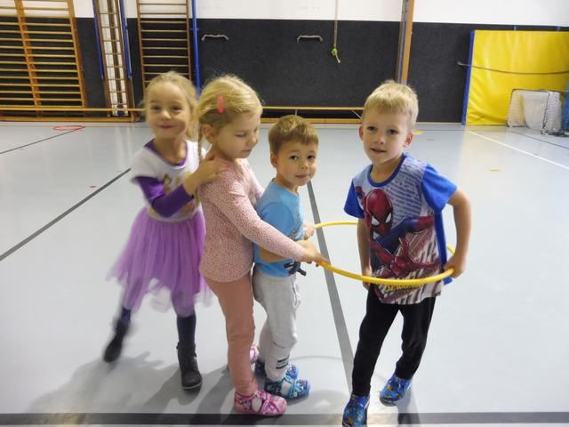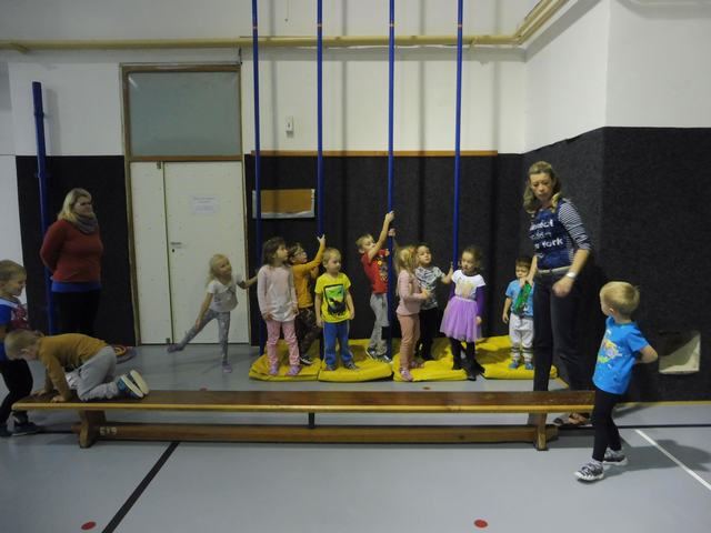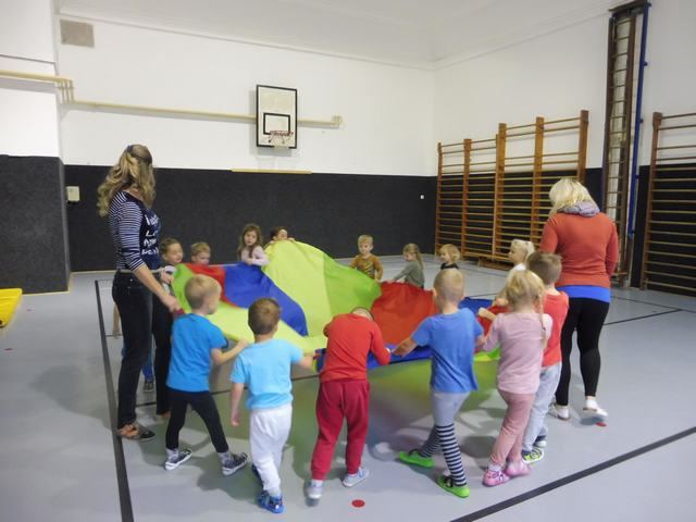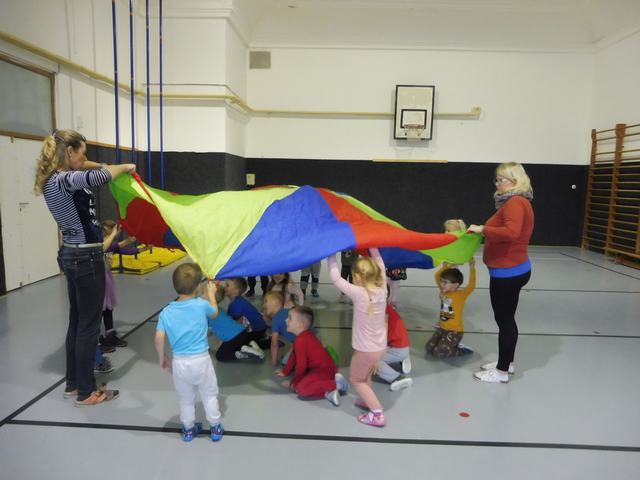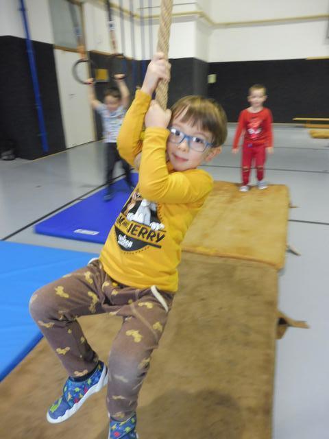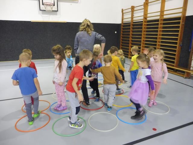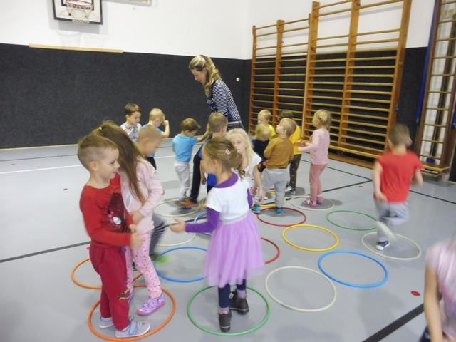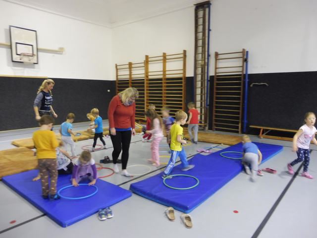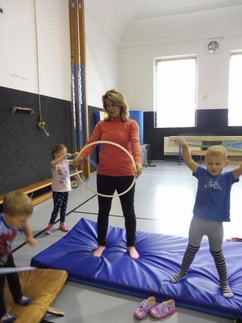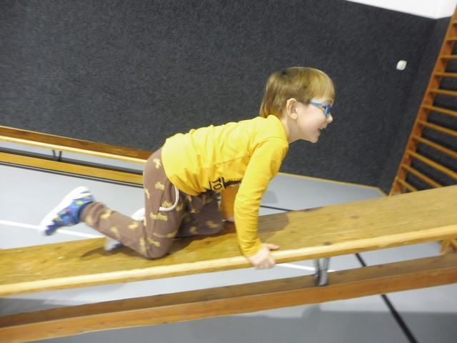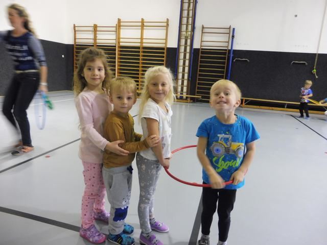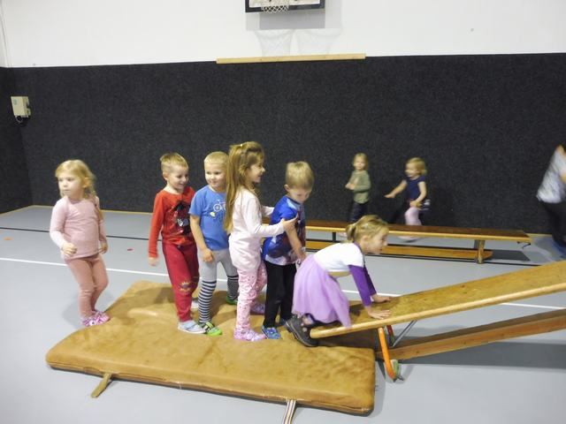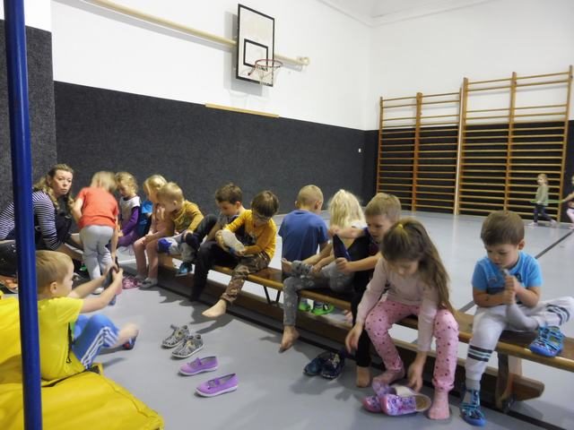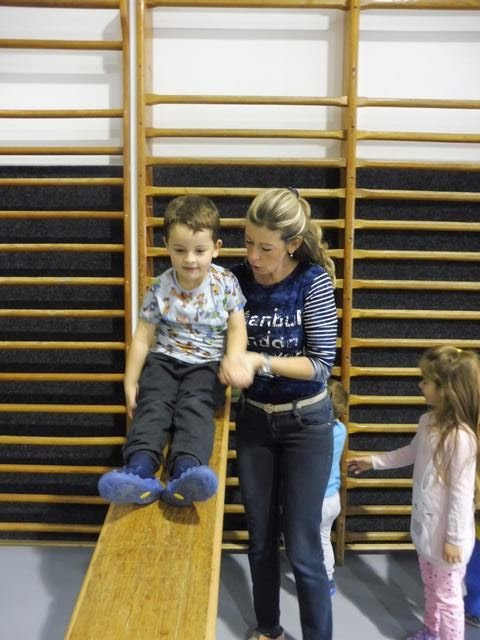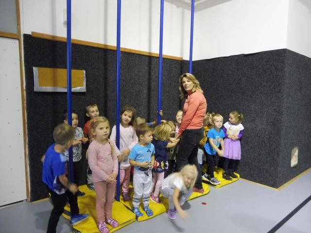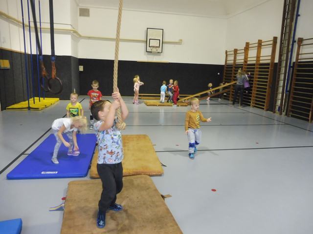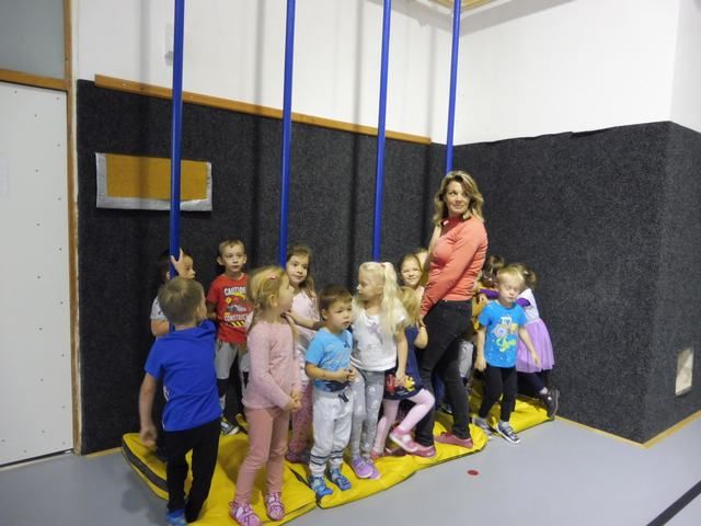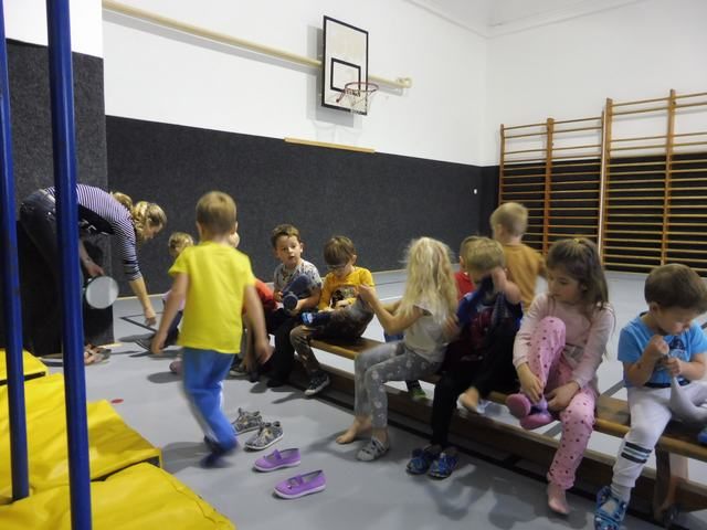 S tělocvičnou se dnes nerady rozloučily děti ze třídy Motýlků. Tělocvična se totiž začíná rekonstruovat, a tak už teď budeme cvičit jen ve třídě a venku. A tak jsme si poslední cvičení pořádně vychutnali. Běhali jsme, skákali, hráli hry s padákem a obručemi, šplhali na tyči, trénovali chůzi po kladině, houpali se jako opičáci na kruhách i laně, lezli po žebřinách a klouzali se po klouzačce z lavičky. Už teď se moc těšíme, až se do tělocvičny zase vrátíme, protože cvičení na různém nářadí nás moc baví.