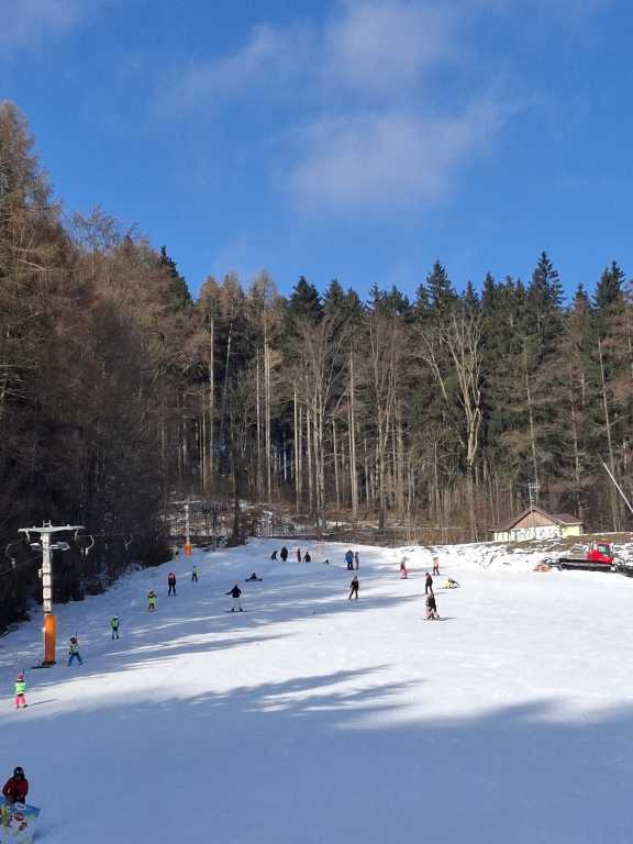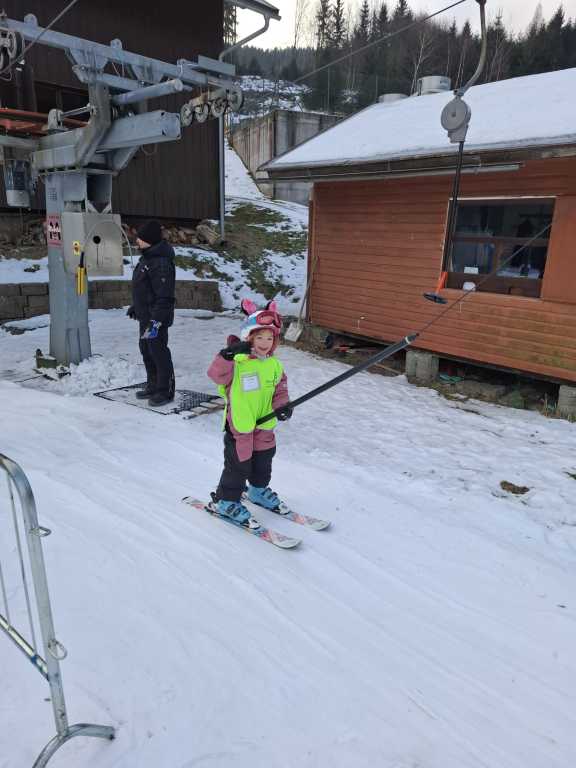 dnešní ráno bylo na Ještědu zamračené, ale to nám náladu nepokazilo. Děti se rozdělily do dvou skupin. Jedna skupina lyžovala ve Fun parku a druhá skupina 14 dětí jezdila na Bucharce. Chválíme všechny děti a máme velkou radost, protože dnes se už nikdo nebál a z každého se stal lyžař. Děti každým dnem zdokonalují své lyžařské umění a bylo rozhodnuto, že zítra čeká děti jízda na lanové sedačce a vyjedou na Skalku. Krátce před odjezdem na nás zamávalo sluníčko a tak se nám nechtělo ani odjet. Opět jeden krásný den za námi.