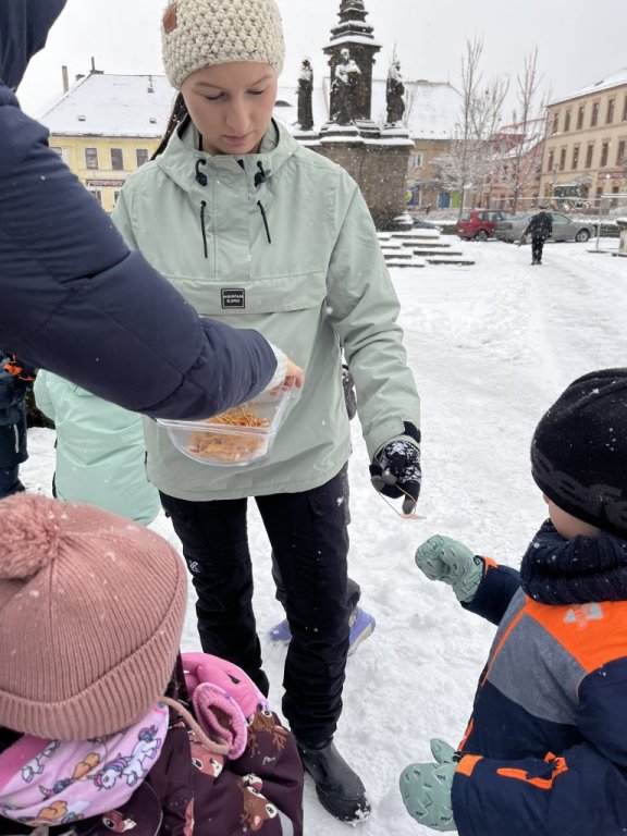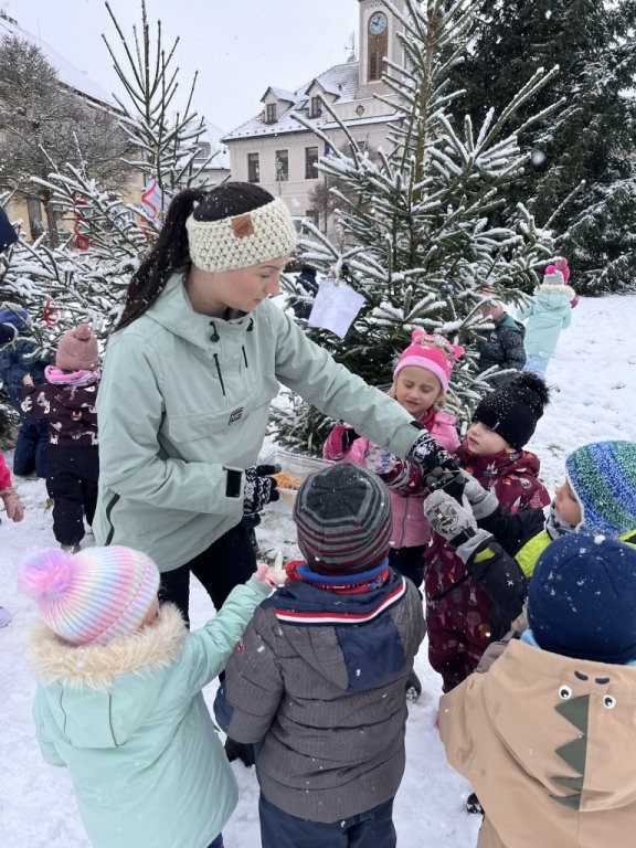Do naší krajiny konečně dorazila pravá zima. S první sněhovou nadílkou jsme se s dětmi vydali na kopec, kde nechybělo veselé bobování, jízdy na lopatách ani radostné koulování. Děti si užily spoustu smíchu a zimních hrátek, které k tomuto období neodmyslitelně patří. Tento týden jsme se také společně vypravili na náměstí, kde na nás čekal vánoční stromeček. Děti si pro tuto příležitost ve školce vyrobily vlastní ozdoby a náš stromeček jsme pak společně ozdobili. Zimní čas si užíváme plnými doušky a radost ze společných zážitků nás krásně naladila na blížící se vánoční svátky.