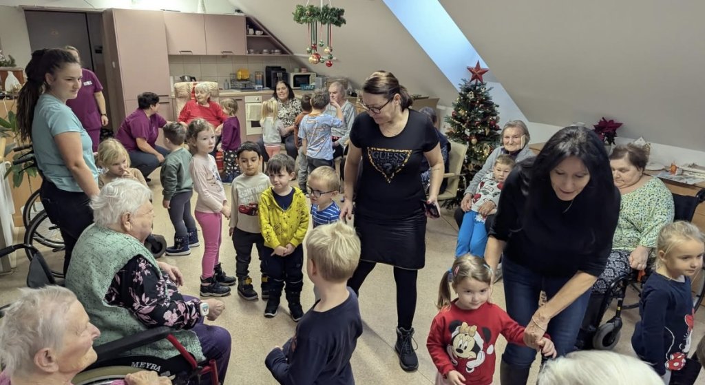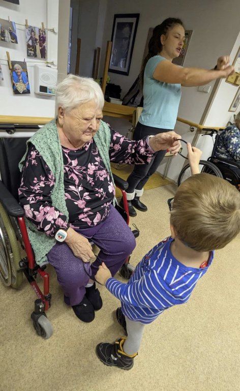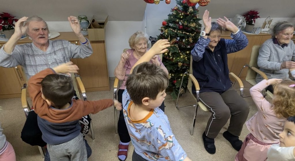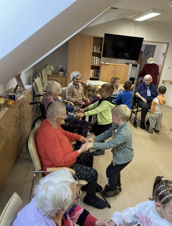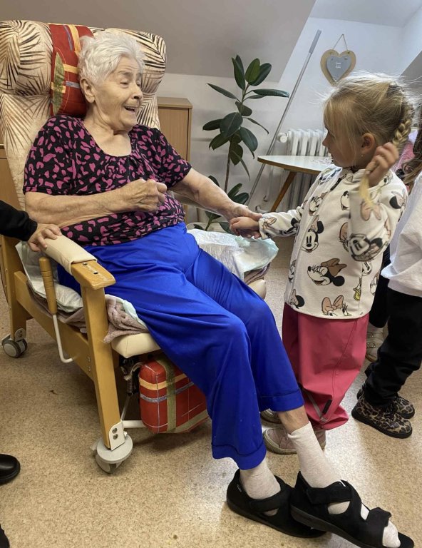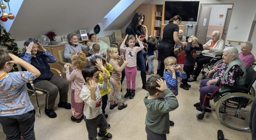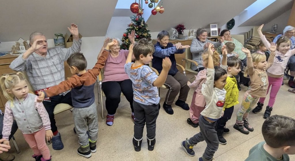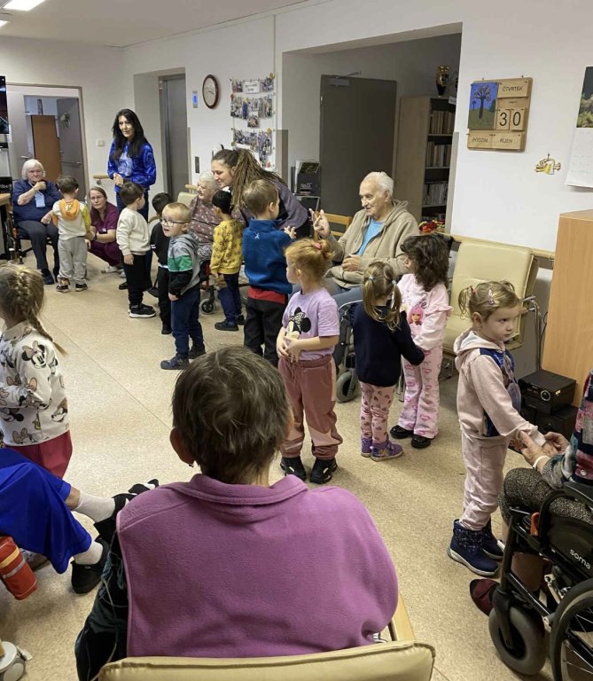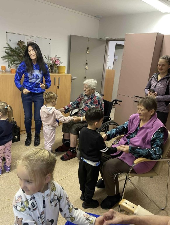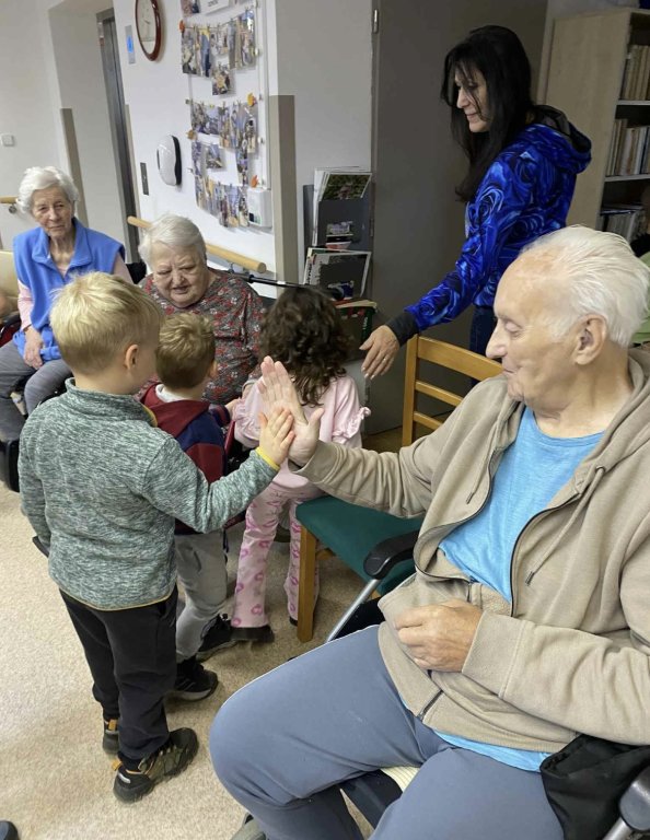 V předvánočním období se třída Koťátek opět vydala na milou a tradiční návštěvu za seniory do místního domova. Zimní čas k sobě přirozeně zve k zastavení, laskavosti a sdílení – a právě to se během setkání naplno podařilo. Už při příchodu děti přivítaly vlídné úsměvy a radostné mávání. Koťátka se postarala o veselou atmosféru – společně se seniory si zacvičila, protáhla tělíčka a při jednoduchých pohybových hrách se rozzářily dětské i dospělé oči. Vzájemné držení za ruce, povídání, úsměvy i drobná pohlazení vytvořily hřejivou atmosféru, která k zimnímu období neodmyslitelně patří. Taková setkání krásně připomínají, jak důležité je propojování generací. Děti přinášejí energii a radost, senioři zase životní moudrost, trpělivost a laskavé objetí. Vznikají díky tomu chvilky, které hřejí ještě dlouho poté, co návštěva skončí. Na konci se Koťátka se všemi přítomnými rozloučila zimním přáním – hodně zdraví, lásky, radosti a klidných dní. Děti popřály, aby nadcházející svátky byly plné světla a aby se všichni ve zdraví setkali zase v novém roce. Domů odcházely s dobrým pocitem, že dokázaly potěšit a rozehřát srdce těch, kteří to nejvíce potřebují. A už teď se těší, až se v příštím roce znovu vydají na další společné cvičení a sdílení radosti.